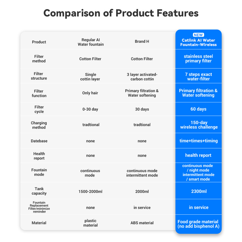 Effective Filtration System: Prevents back flow of drinking water with a double-innovation structure, including a fully enclosed filter and stainless steel filter, using CATLINK filter and food-grade ABS materials.