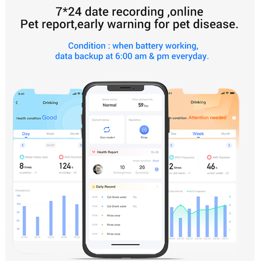 Health Data Recording and Alerts: 24/7 data recording with online pet reports and early warning systems for potential pet diseases.