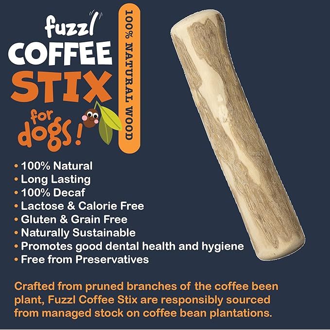 A superb interactive fog toy Happy Dogs, Happy Owners: Whether it's a solo play session or an interactive game, our Fuzzl Coffee Wood Dog Stix will keep your pup entertained for hours.Good Habits, Happy Dog: Encourage healthy chewing habits and keep your furniture safe with these irresistible dog chews. While not indestructible, these are tough and the rounded edges