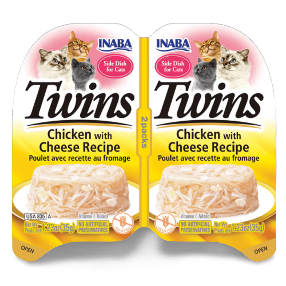- TWICE THE TOPPERS: Twins are two single-serve portions of shredded chicken suspended in a savory chicken broth gelée. Break apart, pull back the lid, and use it as a topper on wet or dry cat food or as a side dish/complement to their meal