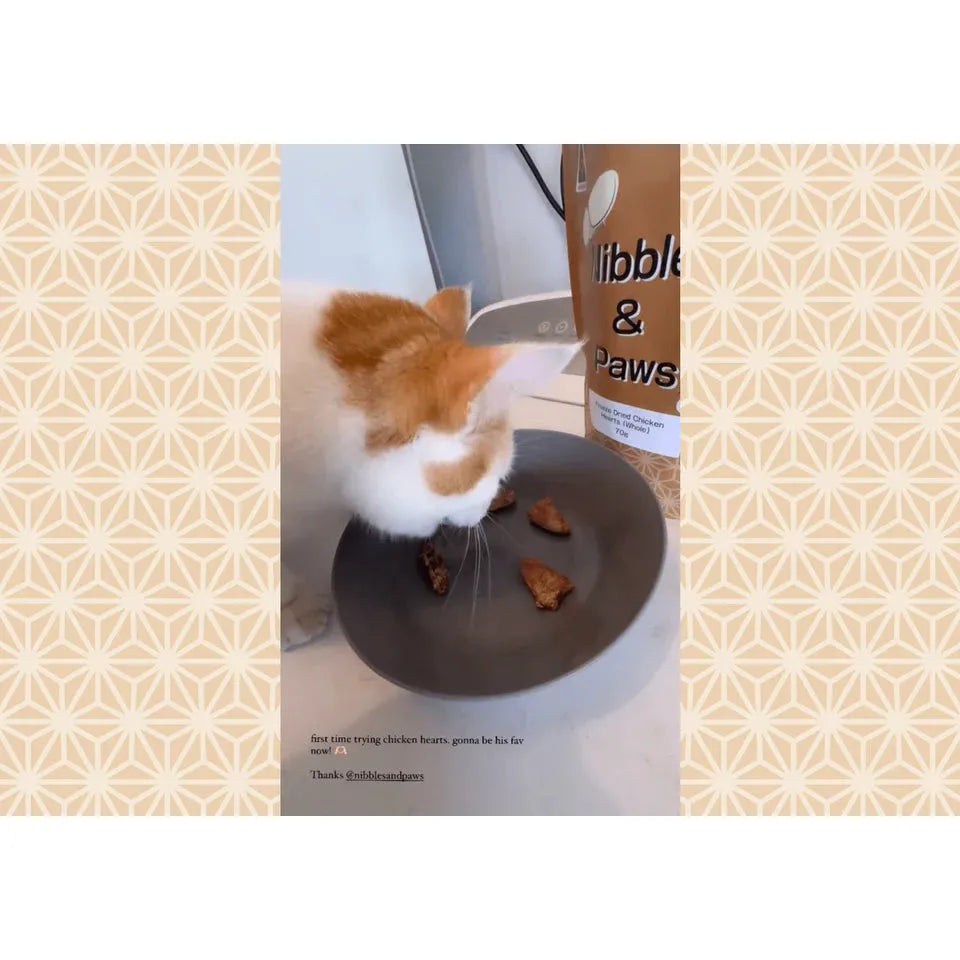 Cats love our freeze dried chicken hearts as it is taurine rich that cats often lack in their diet. As cats could not produce taurine by themselves, it is crucial to introduce essential protein like taurine into their diet to ensure a healthy well being for them.