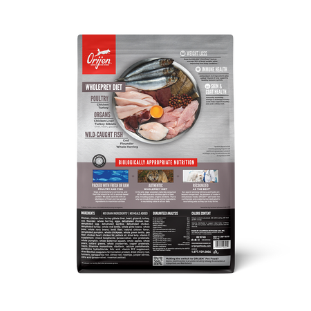 Help your dog thrive with the power of protein-rich recipes that provide peak nourishment. Dogs are ancestral carnivores, so they need a Biologically Appropriate diet packed with fresh or raw animal ingredients. ORIJEN™ Fit & Trim diet is Scientifically Tested to support weight loss* with tailored nutrition. Packed with WholePrey animal ingredients like organs and bone, ORIJEN food is made with the most nutrient-dense, succulent parts of the prey to deliver the nutrition dogs need. With 85% quality poultry & fish ingredients** and a freeze-dried coating, this diet is beyond comparison. The nourishing animal ingredients in this diet help support your dog’s Weight Loss, Immune Health, and Skin & Coat Health.