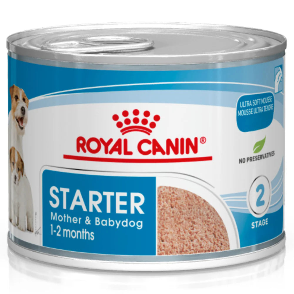 ROYAL CANIN® Starter Mousse Mother & Babydog is specially formulated to support the nutritional needs of pregnant or lactating mothers and weaning puppies up to the age of 2 months.
