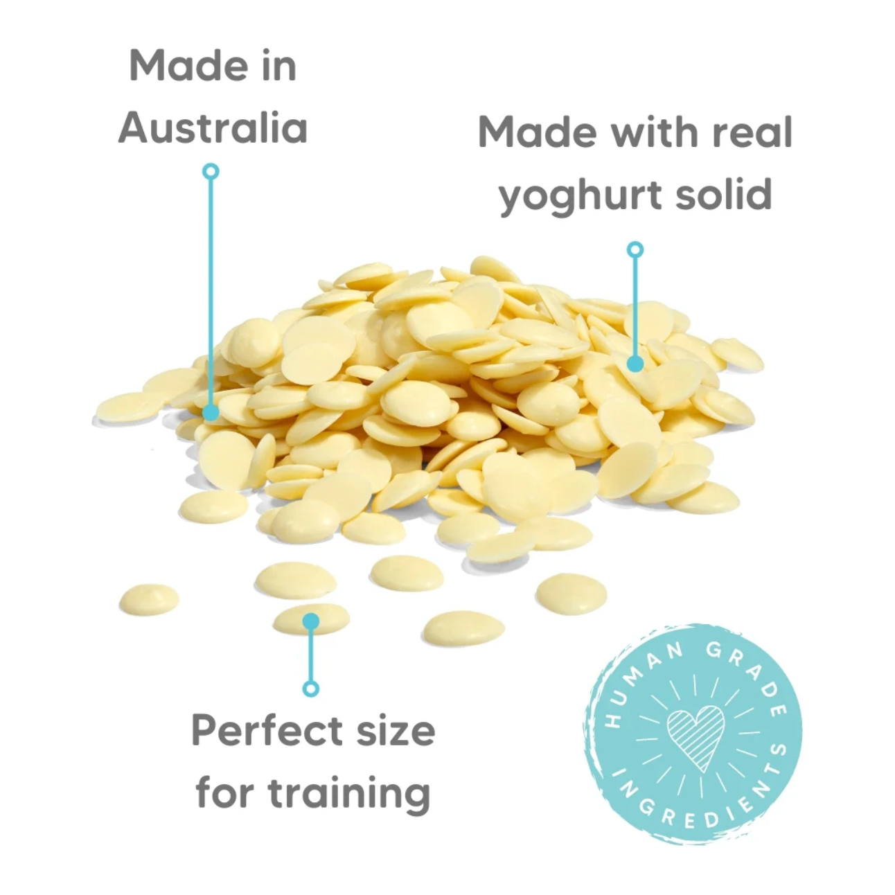 These Australian-made yogurt drops are the ultimate training treat for your pet. Crafted with human-grade ingredients, they are bursting with flavor and infused with yogurt to provide added calcium and a probiotic boost.