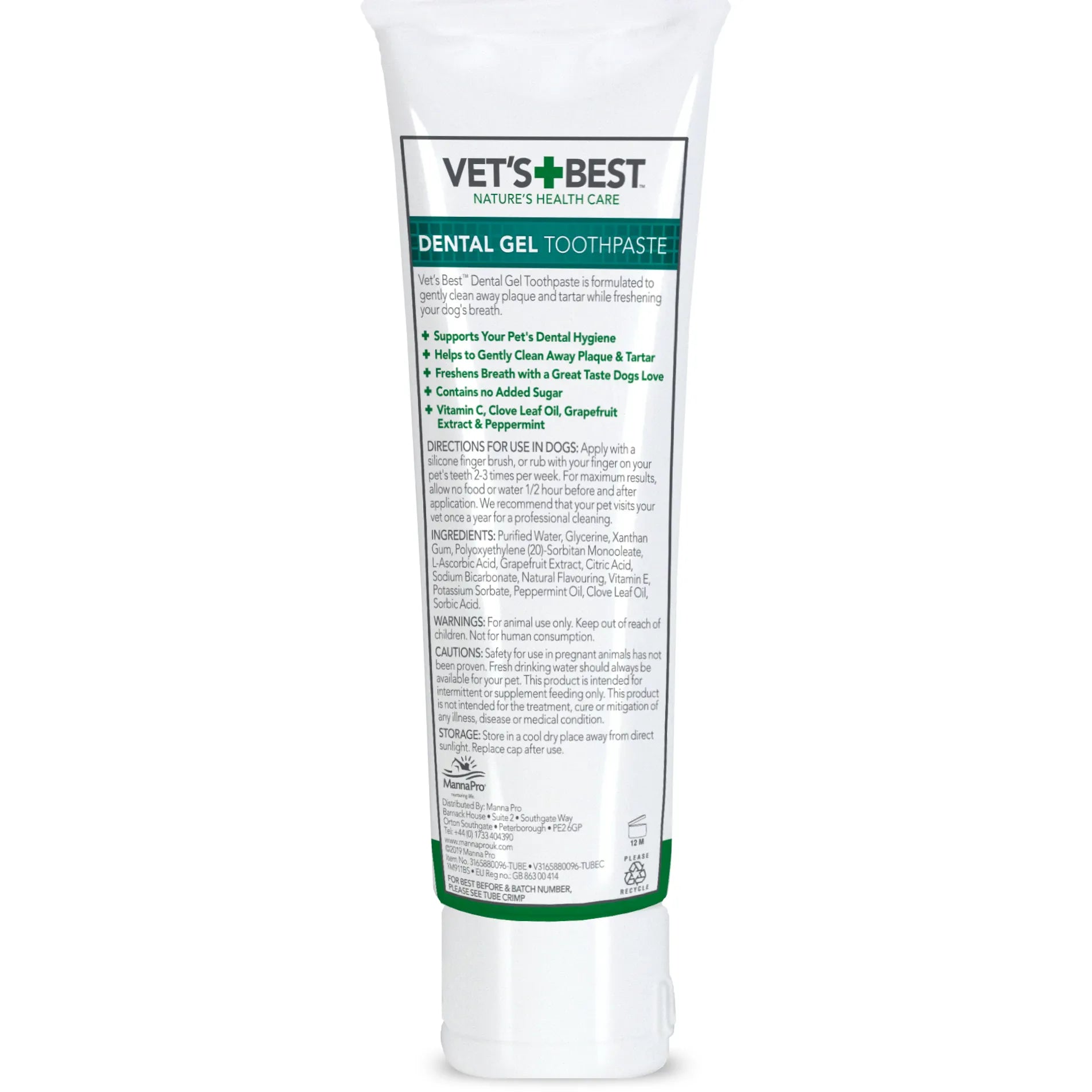 Vet's Best Dental Gel Toothpaste is formulated to gently clean away plaque and tartar while freshening your dog's breath.