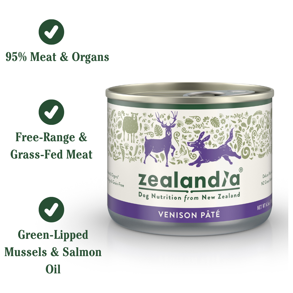 New Zealand Wild Venison is hypoallergenic, free from any growth hormones, and antibiotics. Venison Pate Dog formula is slow cooked in a delicious broth, loaded with taste and delivering a whole new level of nourishment and satisfaction for your pet.